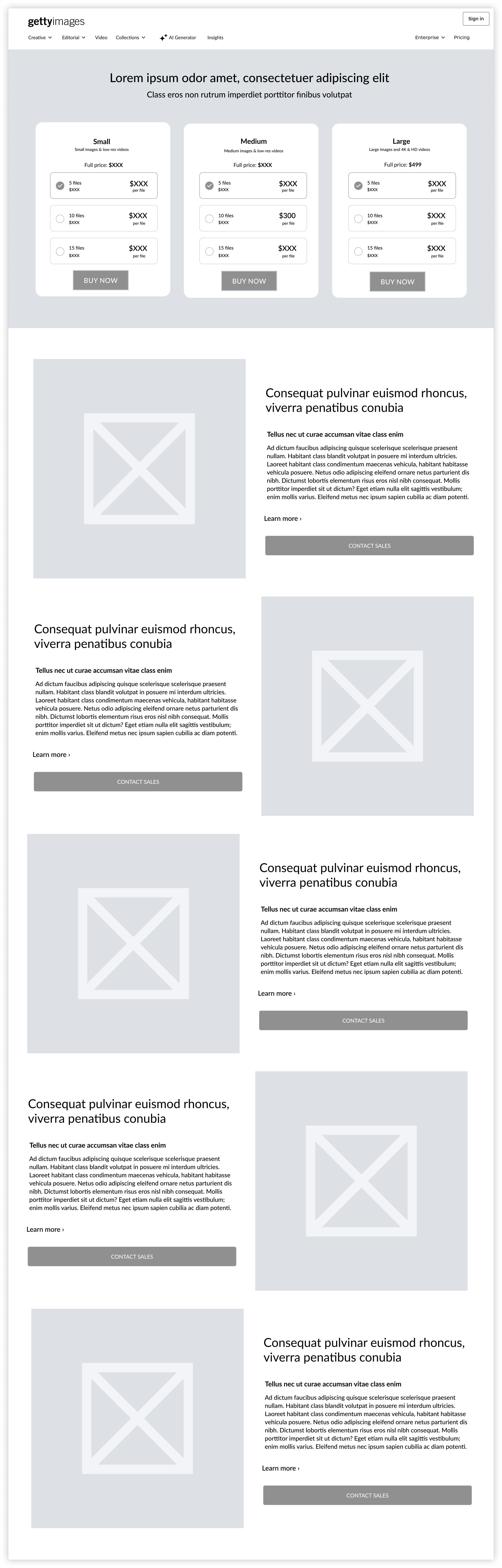 We also wanted to make sure all of Getty’s products were highlighted and promoted on the page clearly at a glance