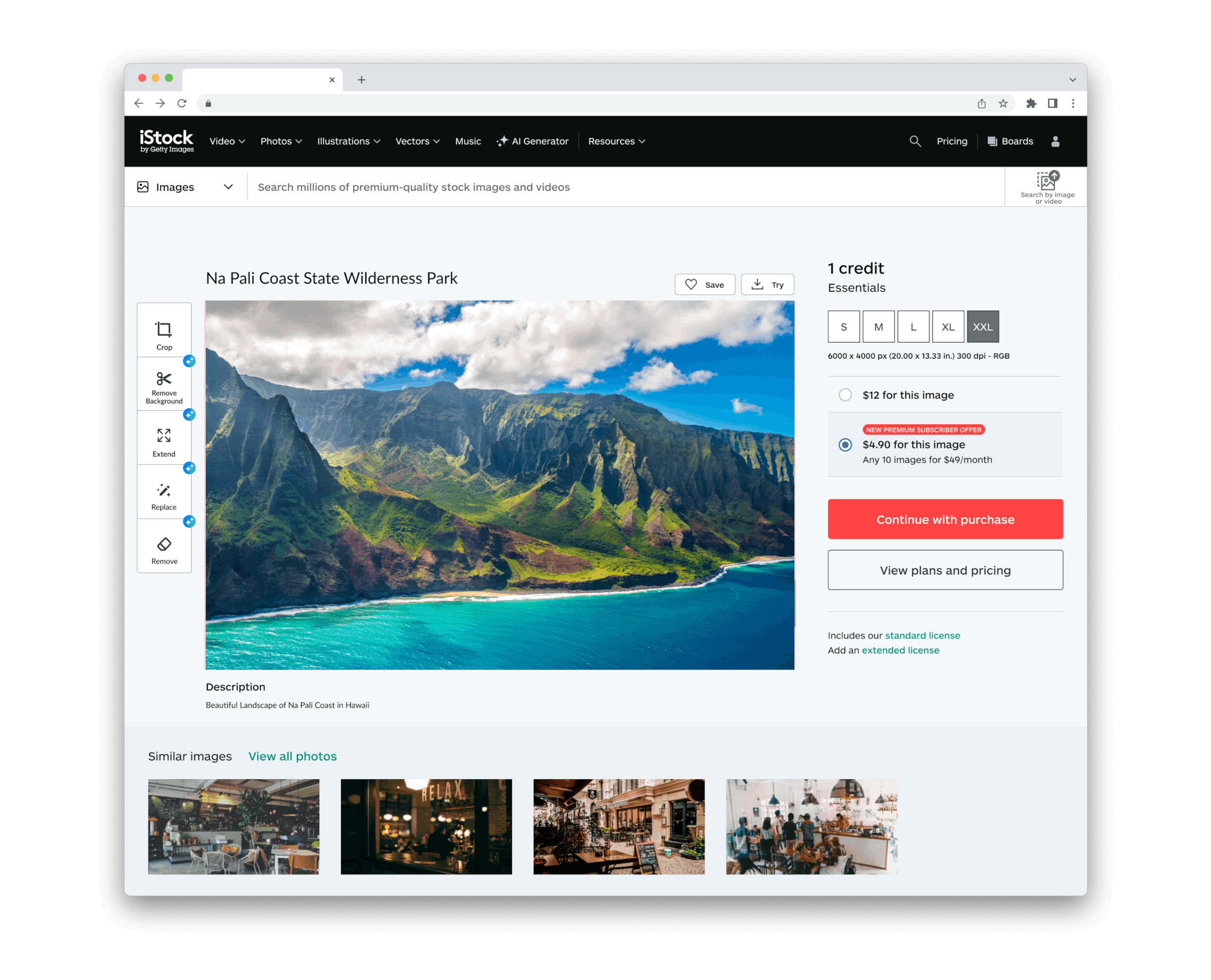iStock is a stock media platform offering a wide range of high-quality photos, videos, illustrations, and music for creative professionals. In addition to its traditional content, iStock offers a relatively new AI subscription that provides access to AI-generated images and design assets, enabling users to create custom content through an AI generator console.