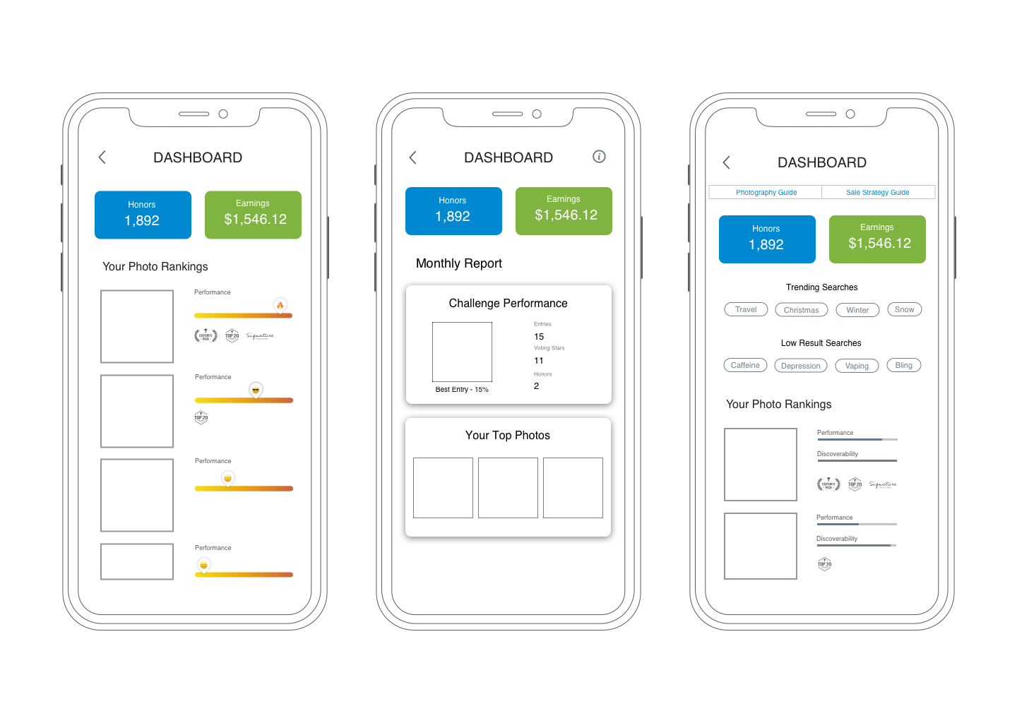 We created an in-app dashboard that addressed different types of photographers’ needs and pain points that we identified through survey responses and user interviews. Users responded with positive feedback and we were successful in increasing user behavior around uploading and adding metadata. We did not see an increase in community-oriented behaviors and plan to improve that in the future.