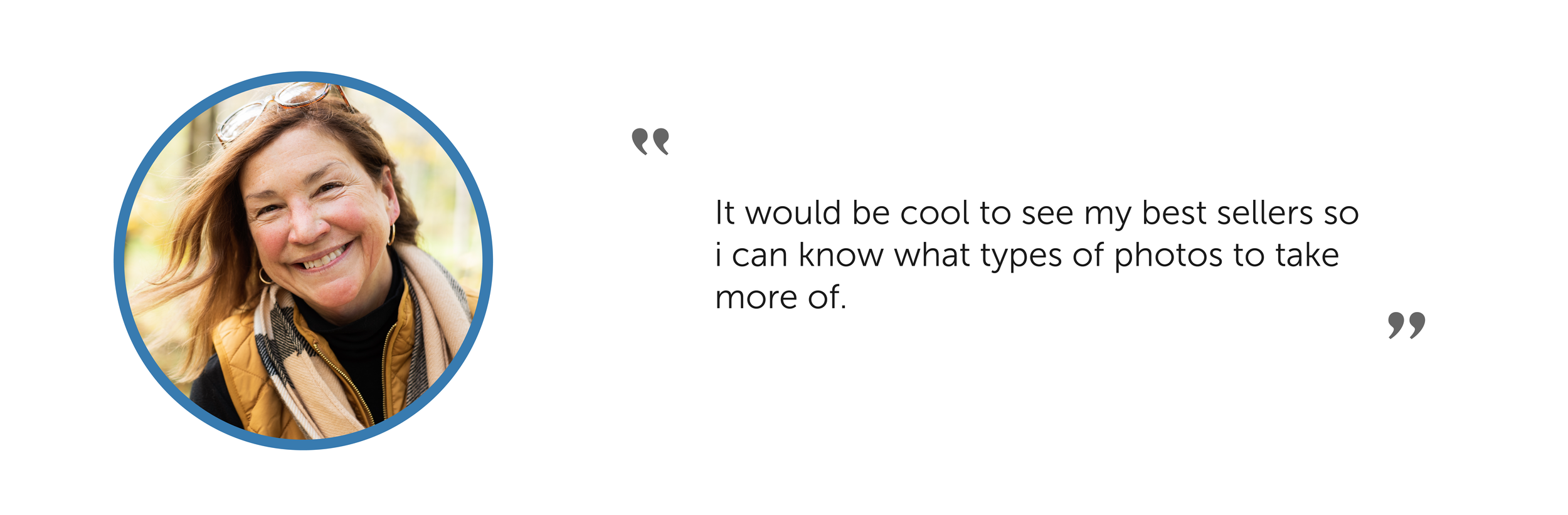 Users reported enjoying the dashboard overall, particularly the visibility into their Top Selling Photos